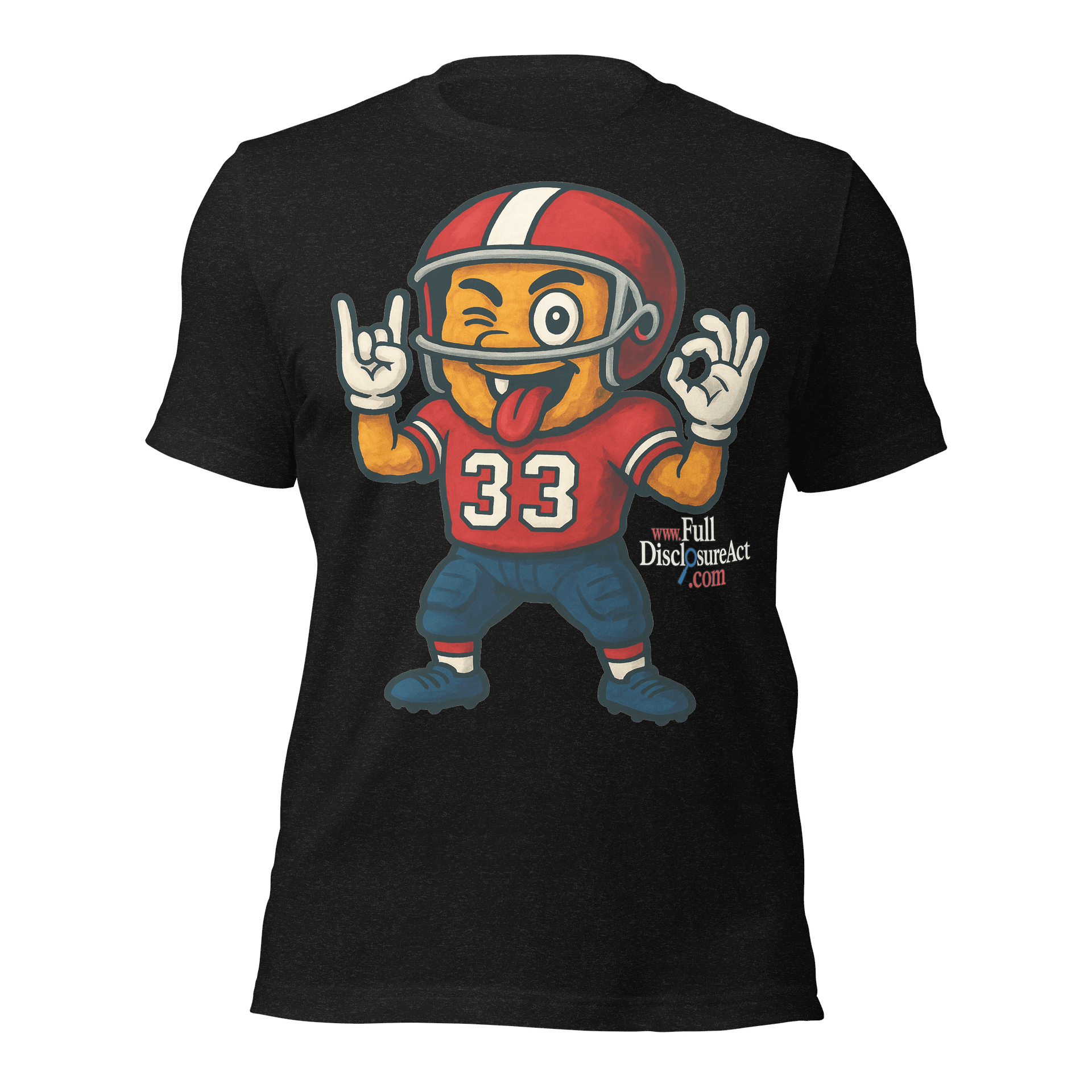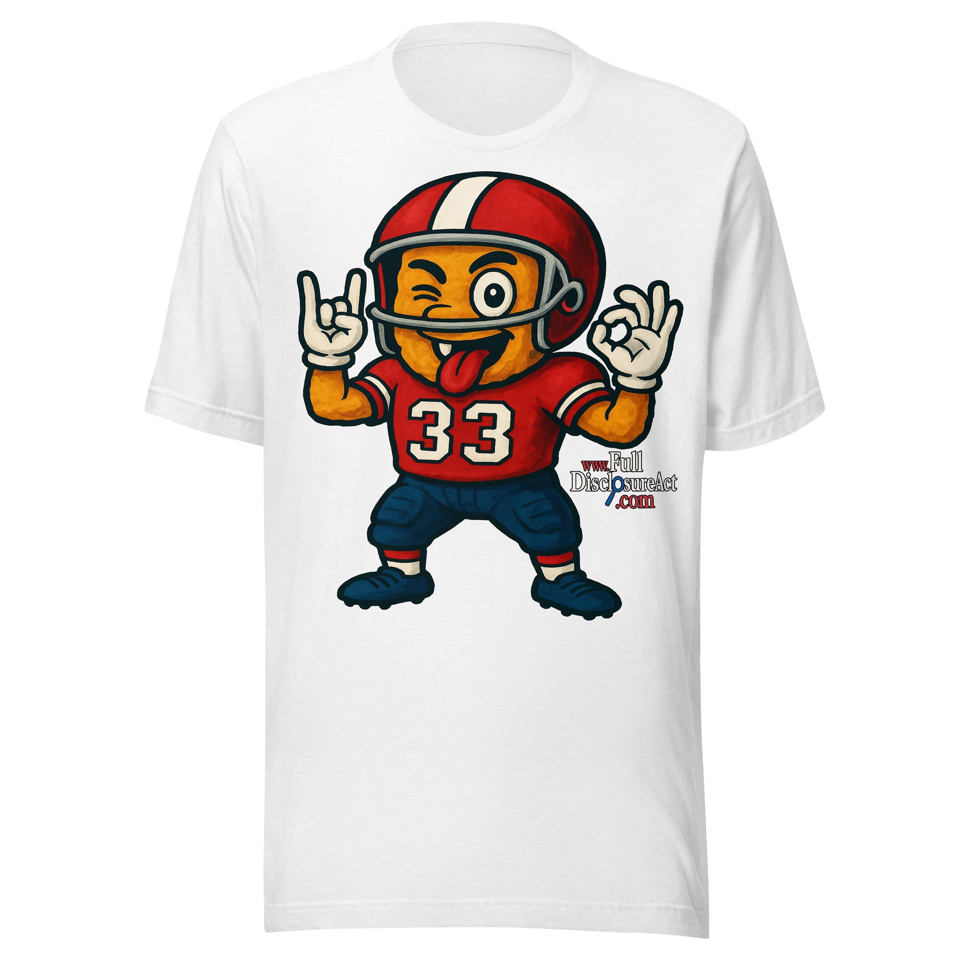 This tee is the perfect blend of fun, attitude, and all-day comfort. Featuring a bold, cartoon football character with personality for days, this shirt is everything you’ve dreamed of and more. It feels soft, lightweight, and has just the right amount of stretch. Comfortable, flattering, and built for everyday wear—whether you’re watching the game, playing it, or just living life with your tongue out and your horns up.