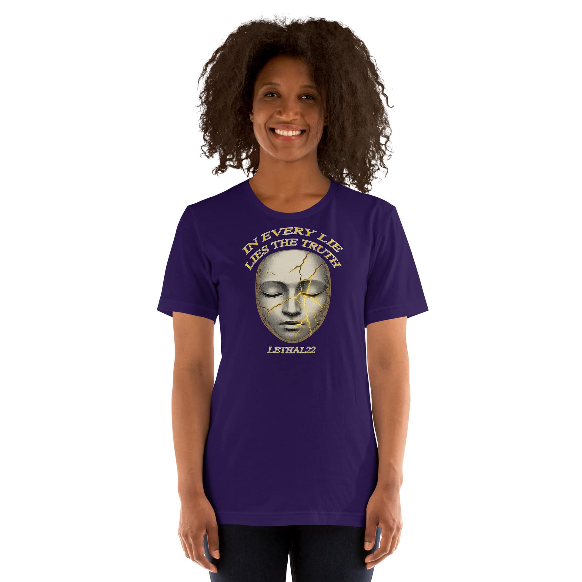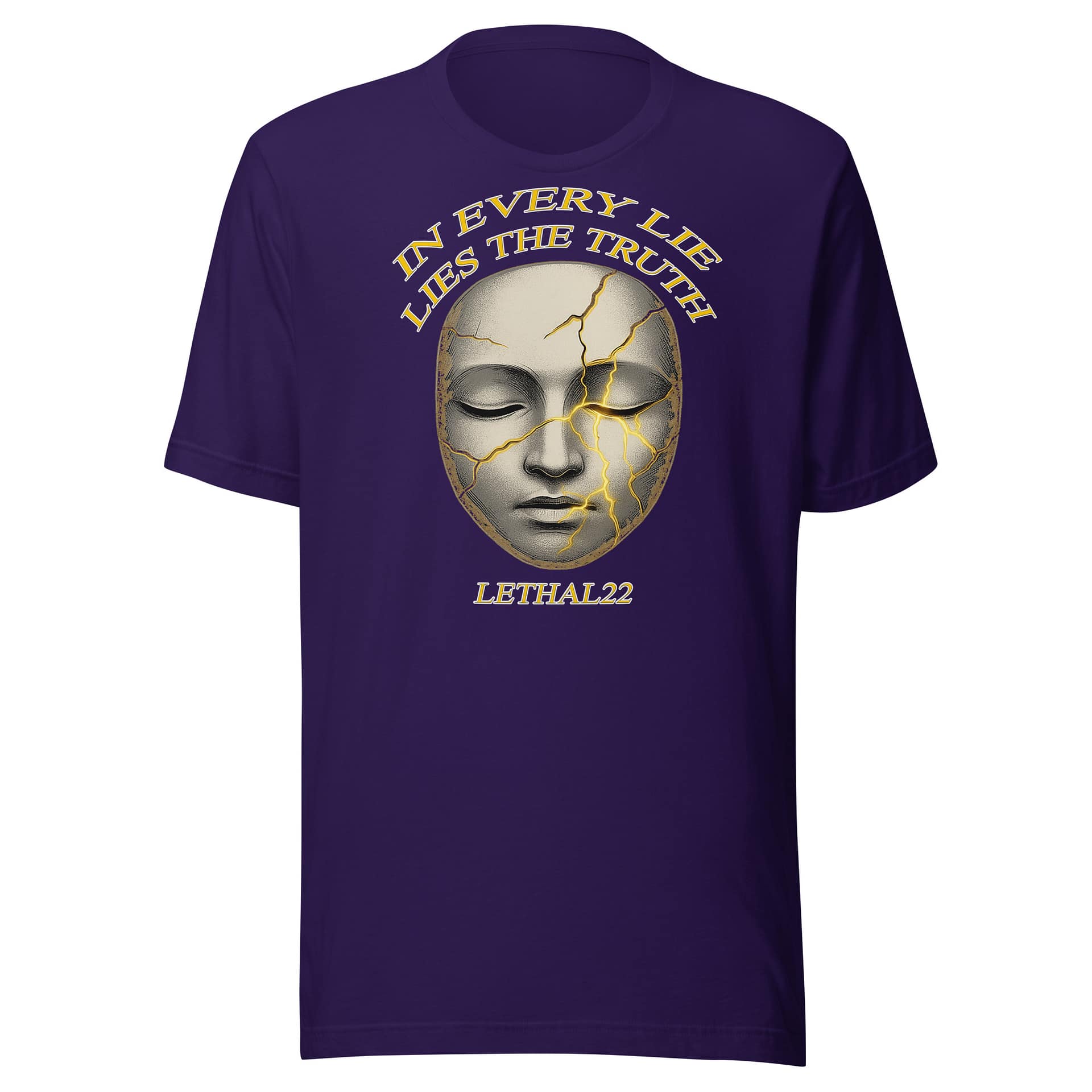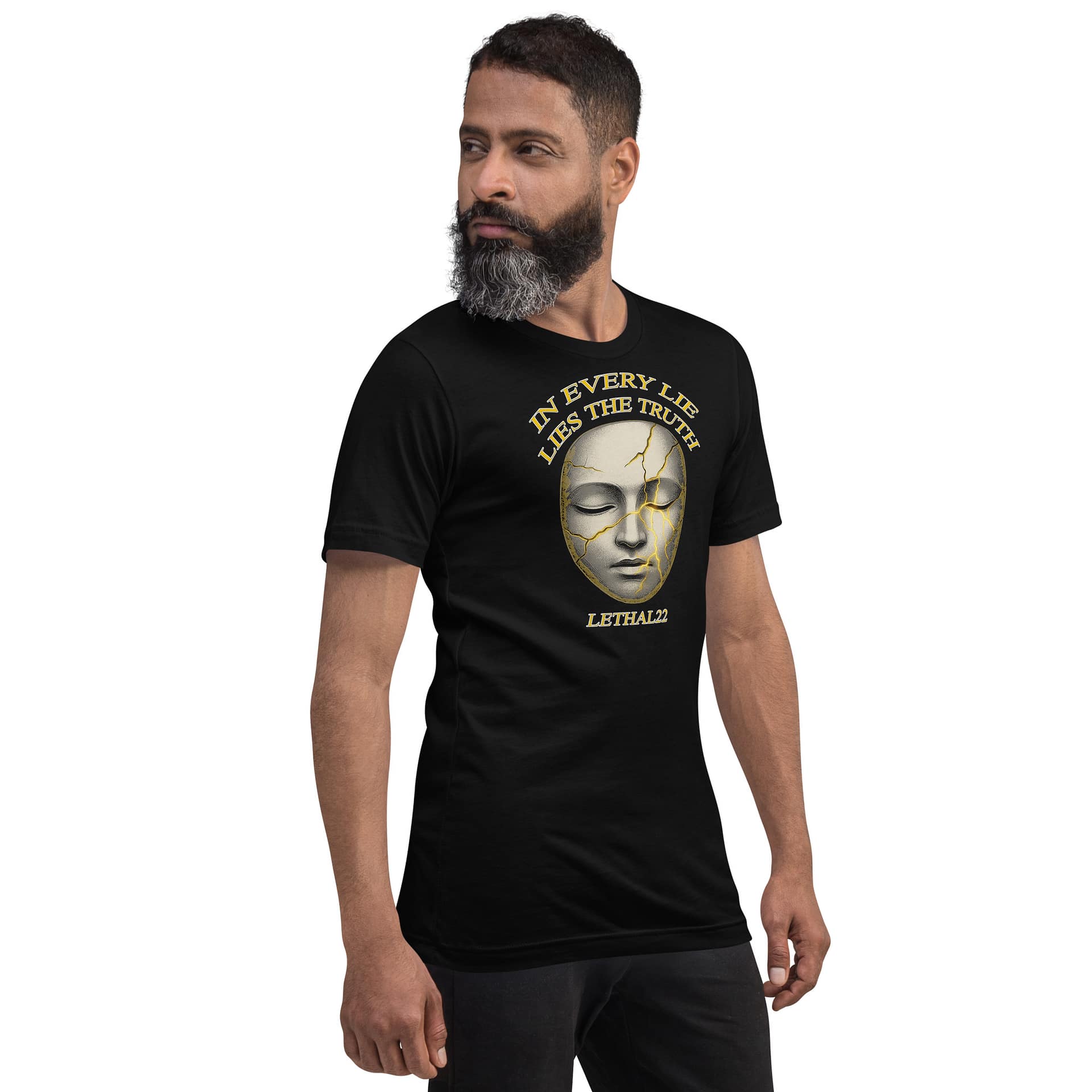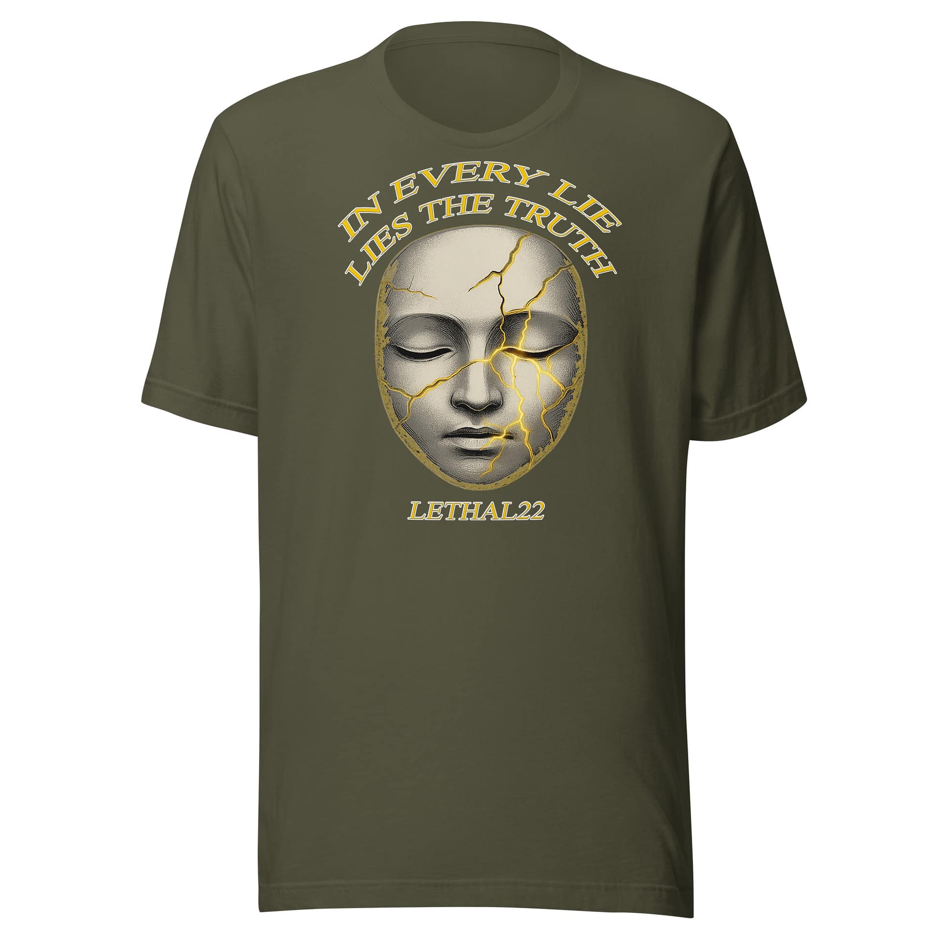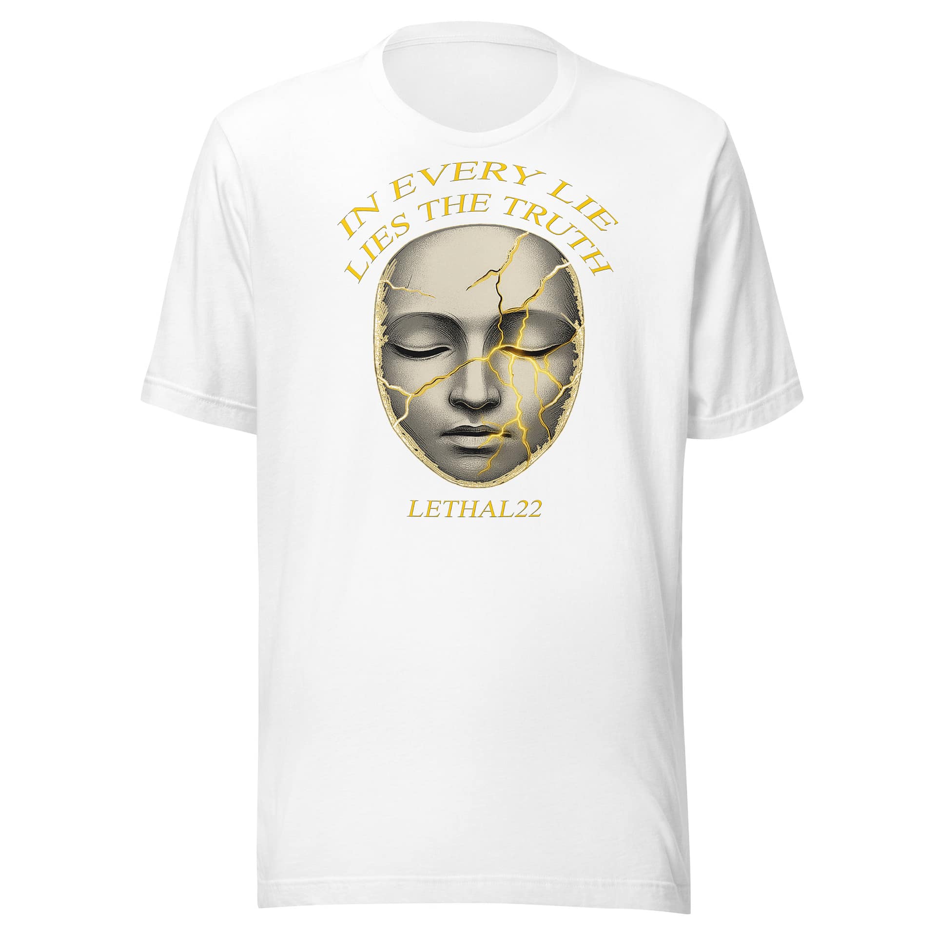 a serene face fractured by golden fault lines — the evidence of every lie that tried but failed to bury the truth. What breaks us can also reveal us. What deceives us ultimately exposes itself.