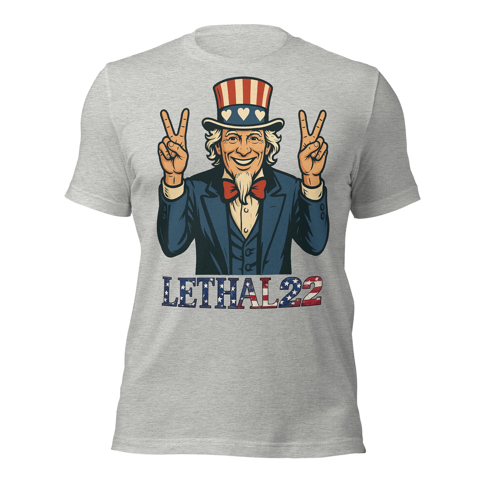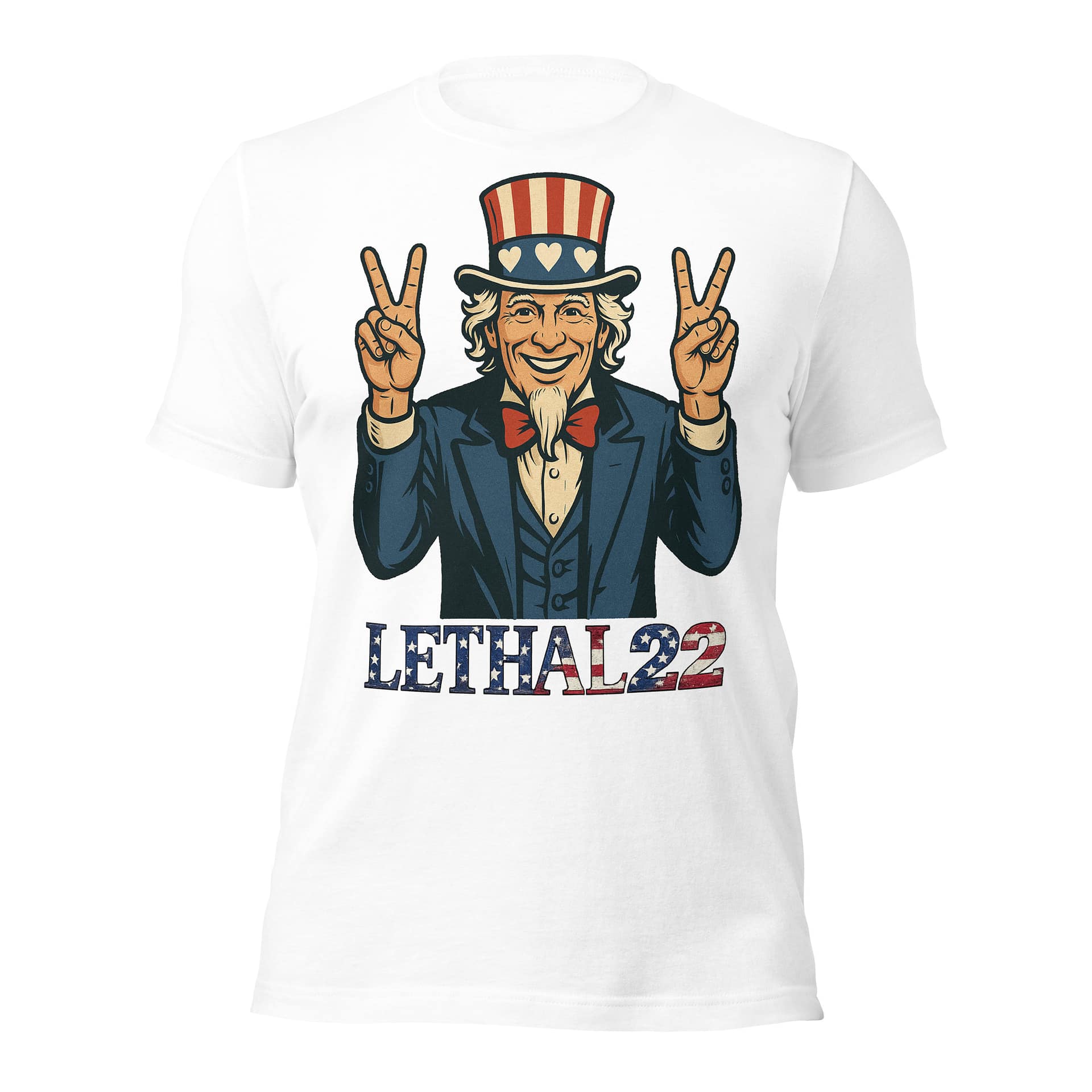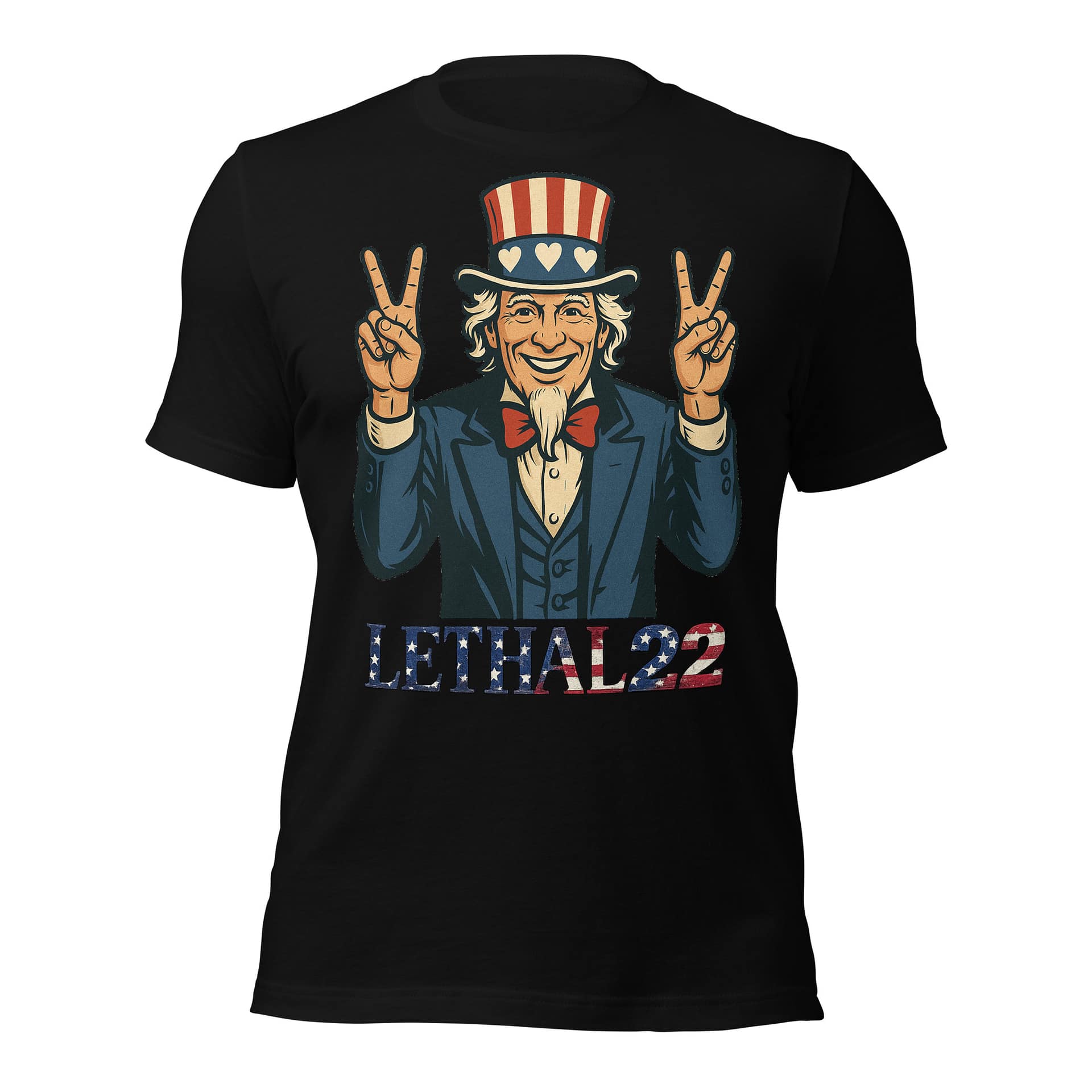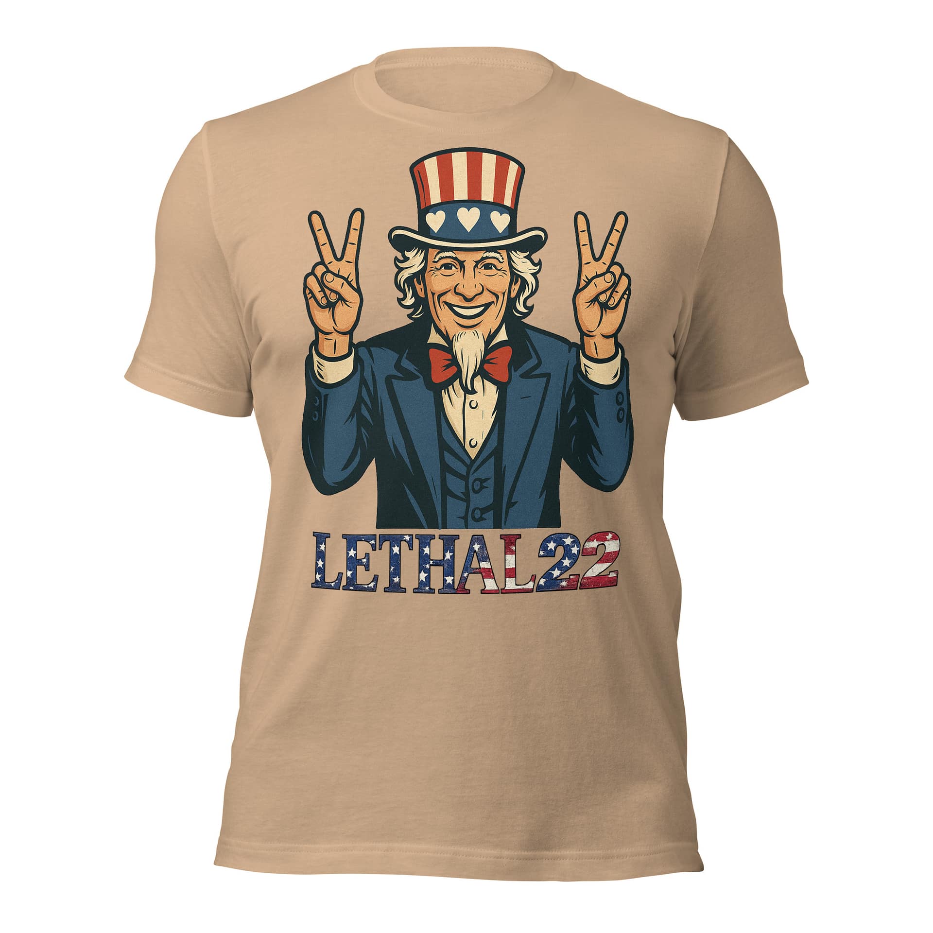 Uncle Sam raising two peace signs is a reminder that love of country does not mean blind obedience. Real patriotism means caring enough about America to demand accountability, integrity, and open dialogue.