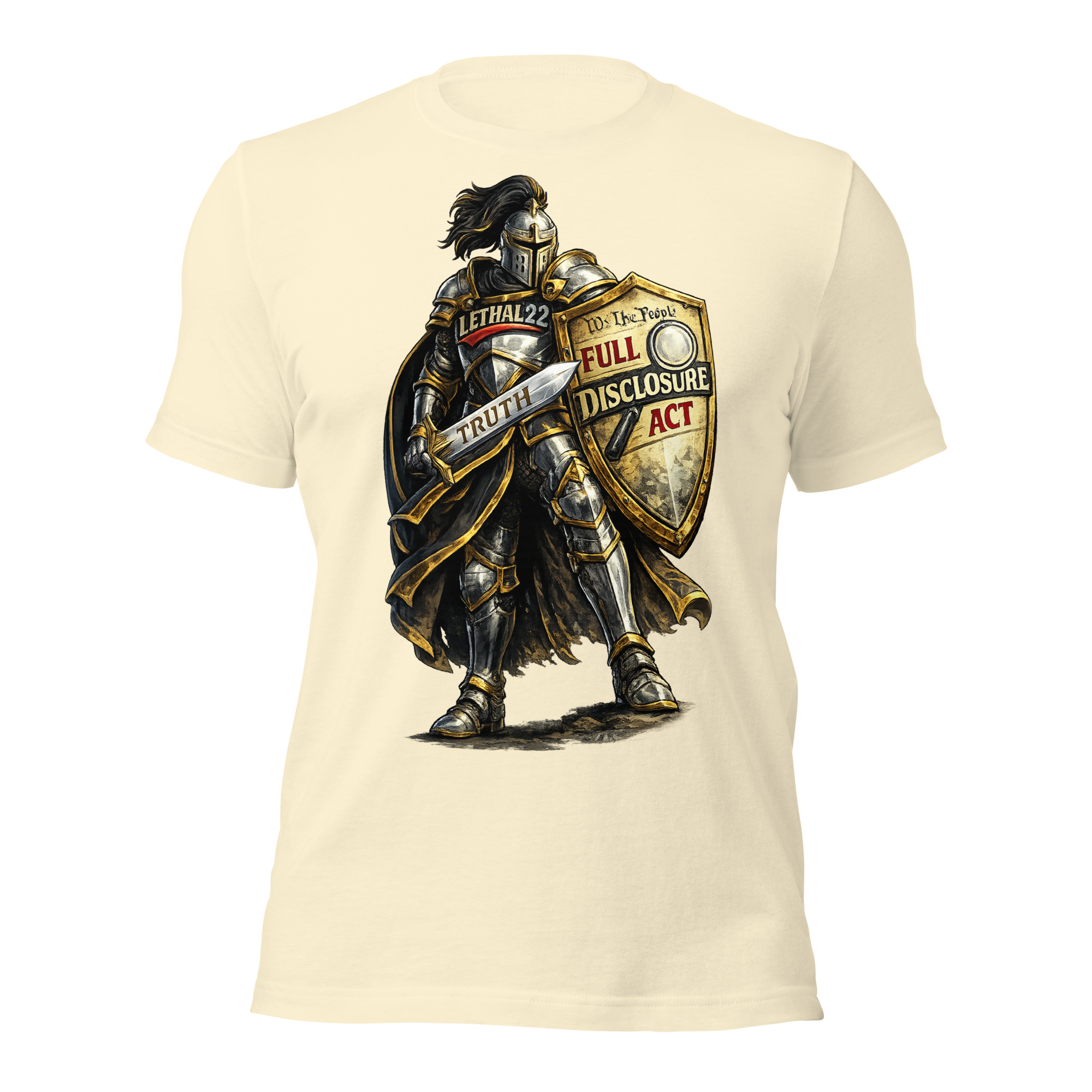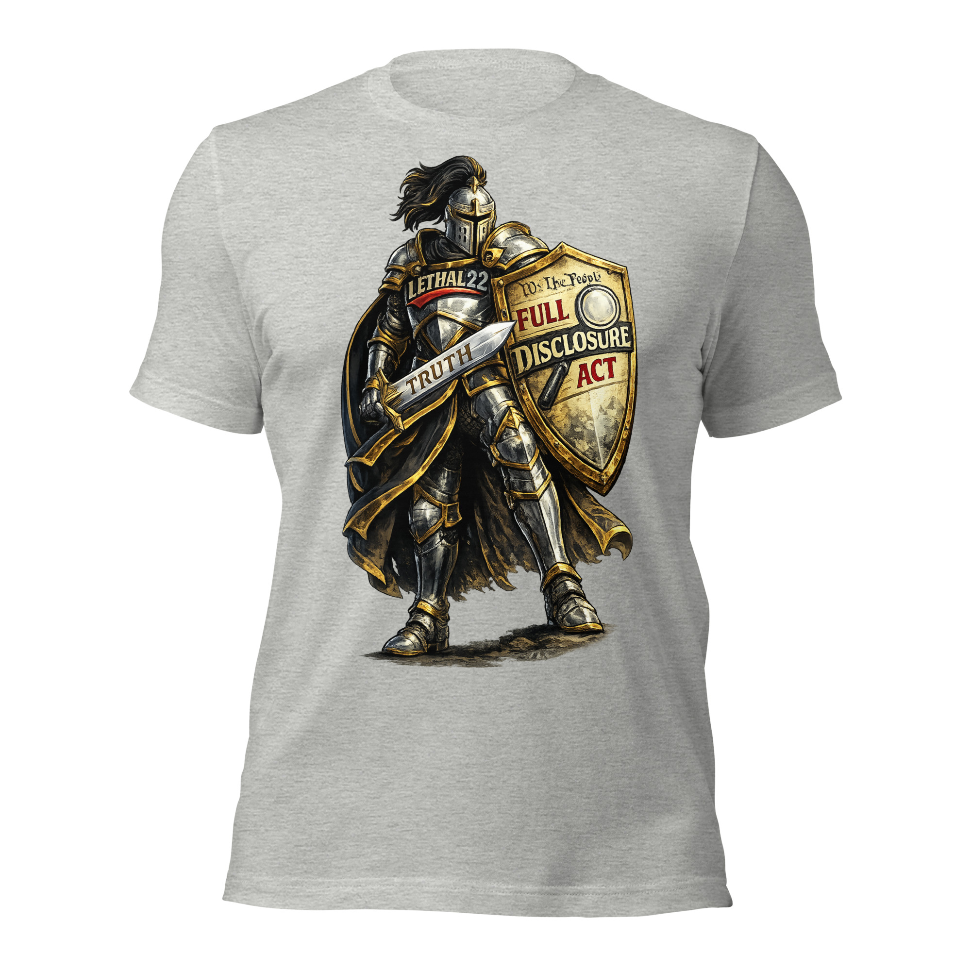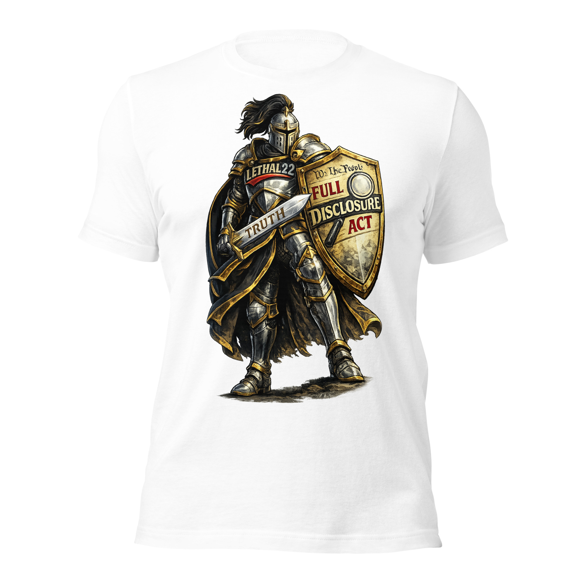 With LETHAL22 on the chest, the Full Disclosure Act on the shield, and TRUTH etched into the blade — this design is for the ones who refuse to stay silent.