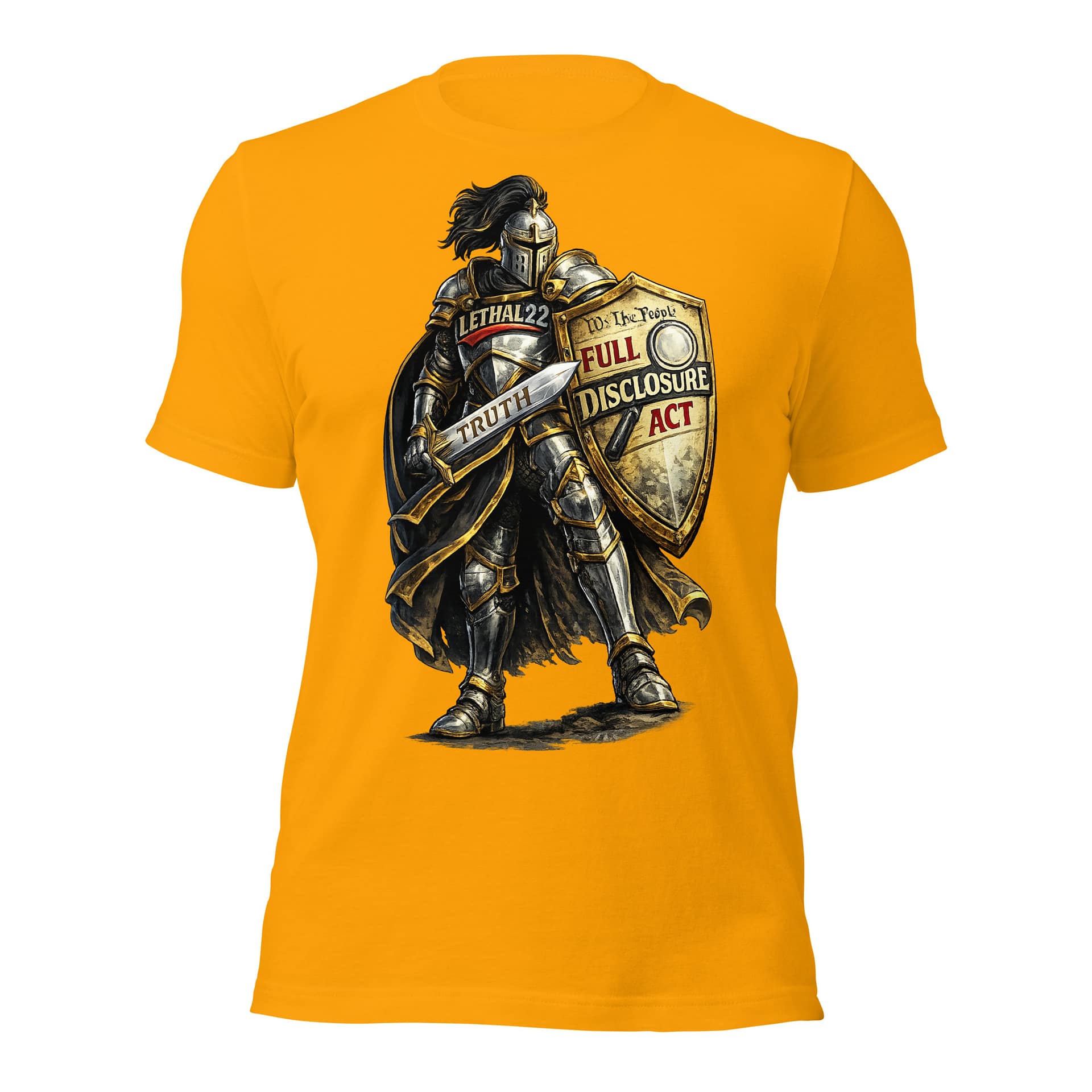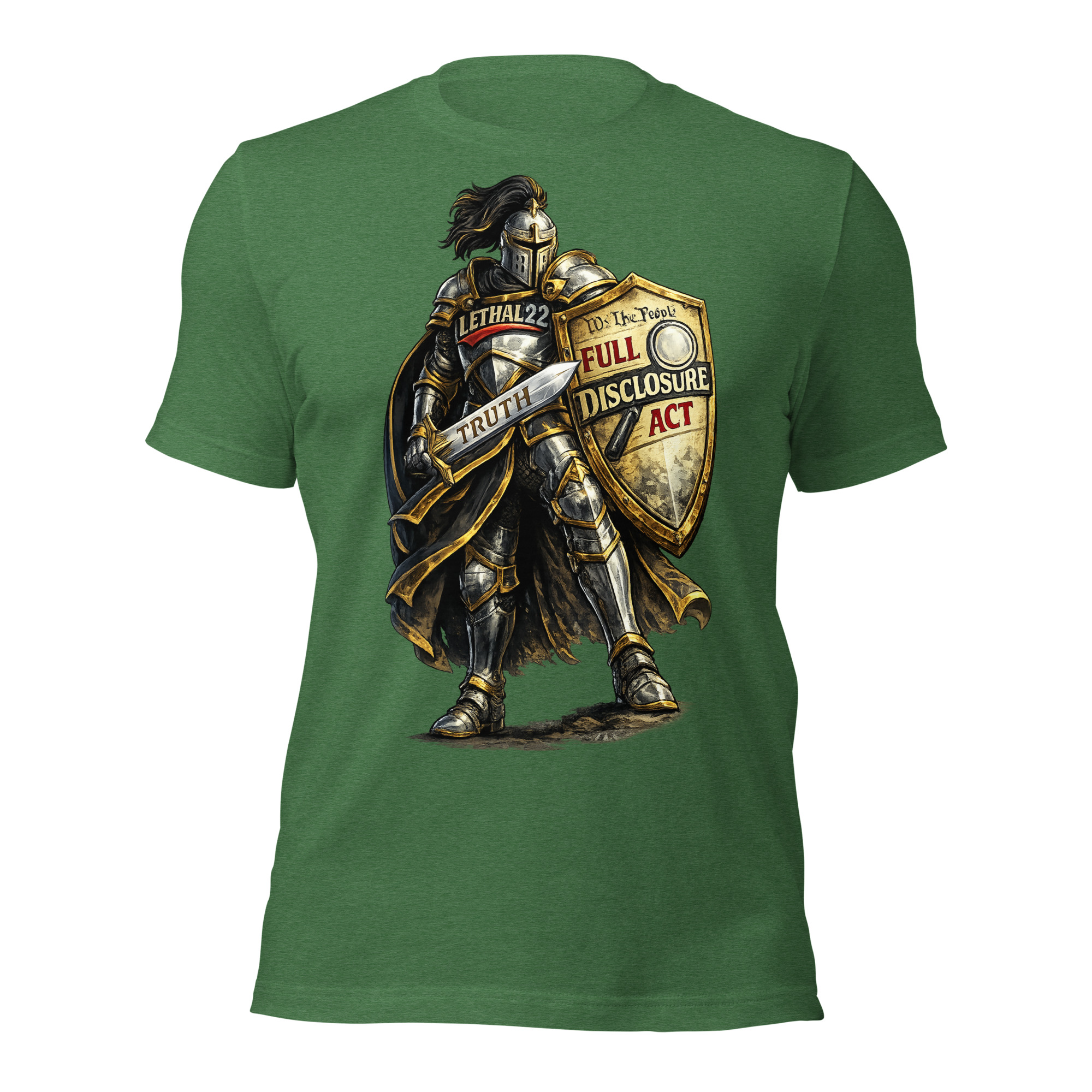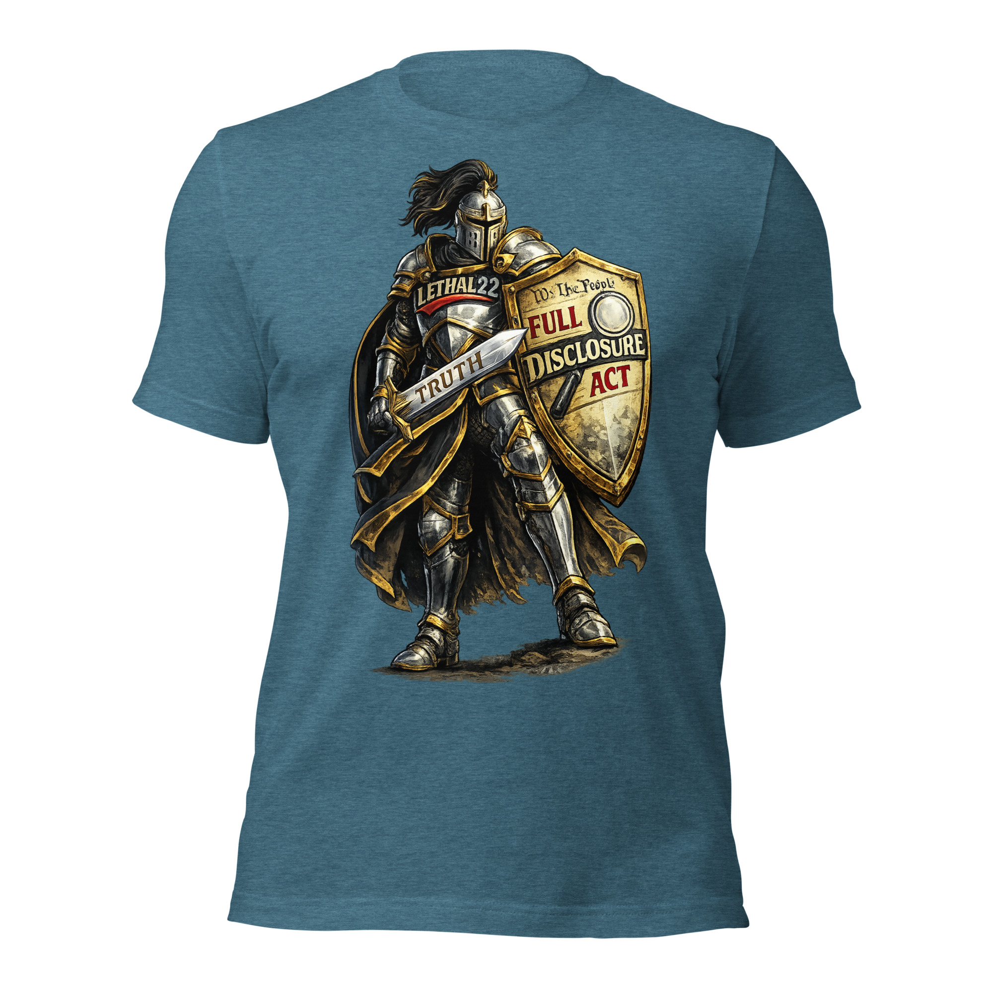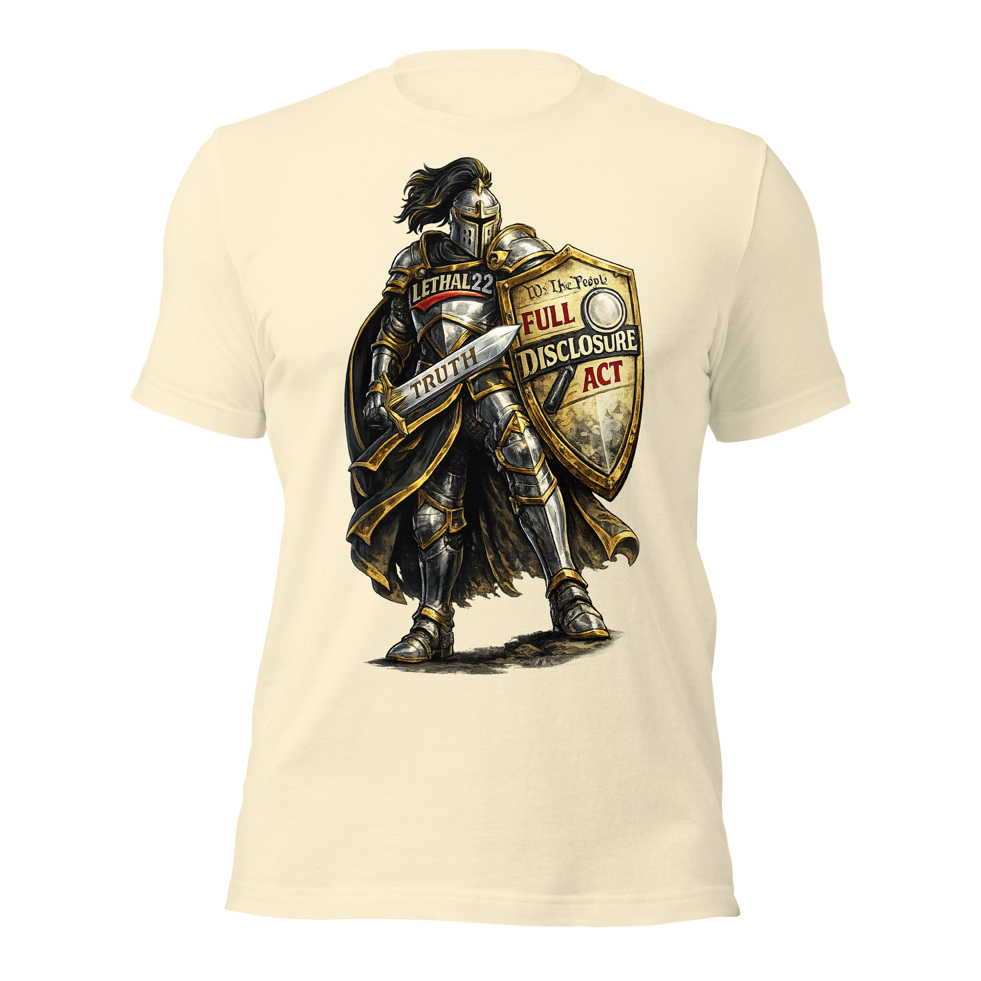 With LETHAL22 on the chest, the Full Disclosure Act on the shield, and TRUTH etched into the blade — this design is for the ones who refuse to stay silent.