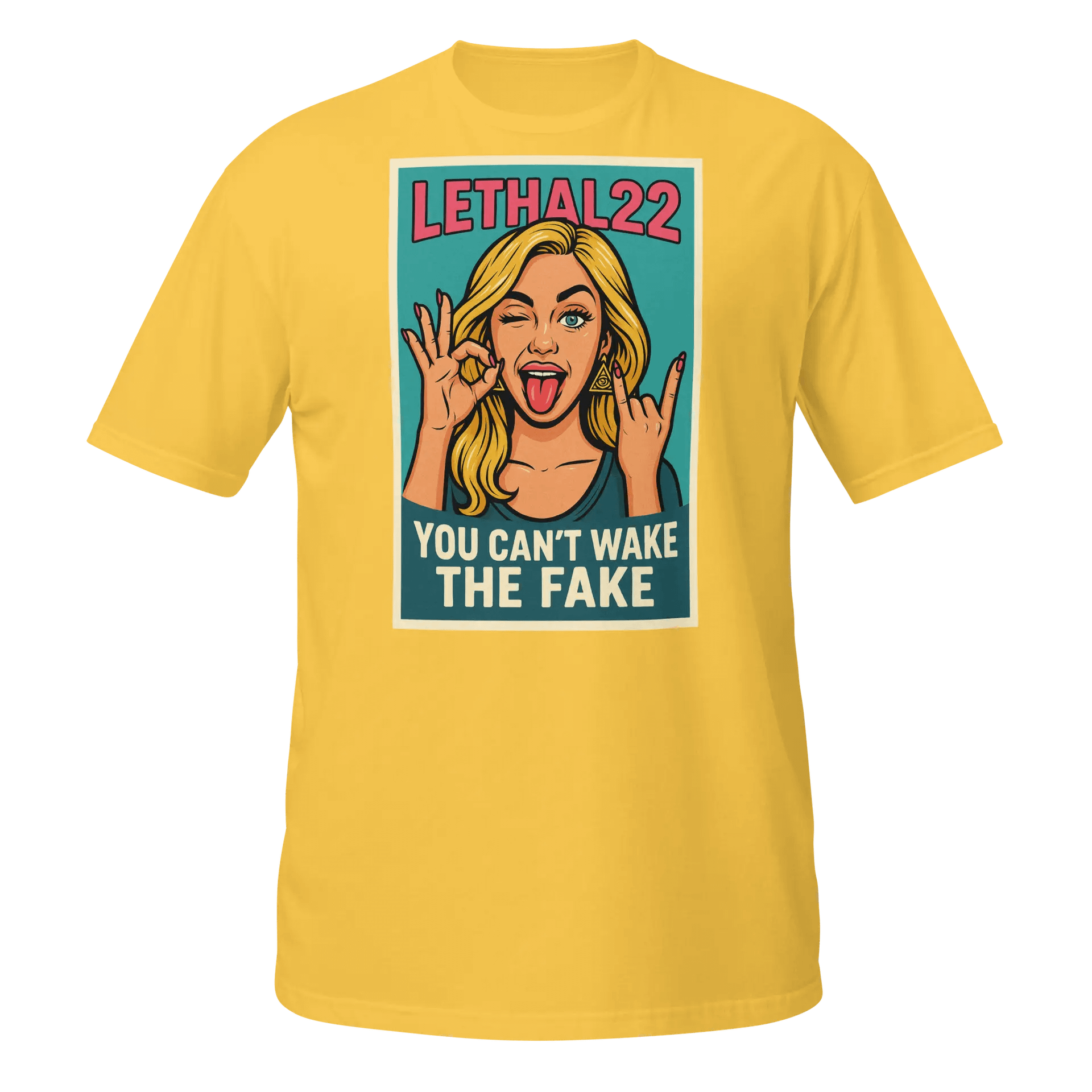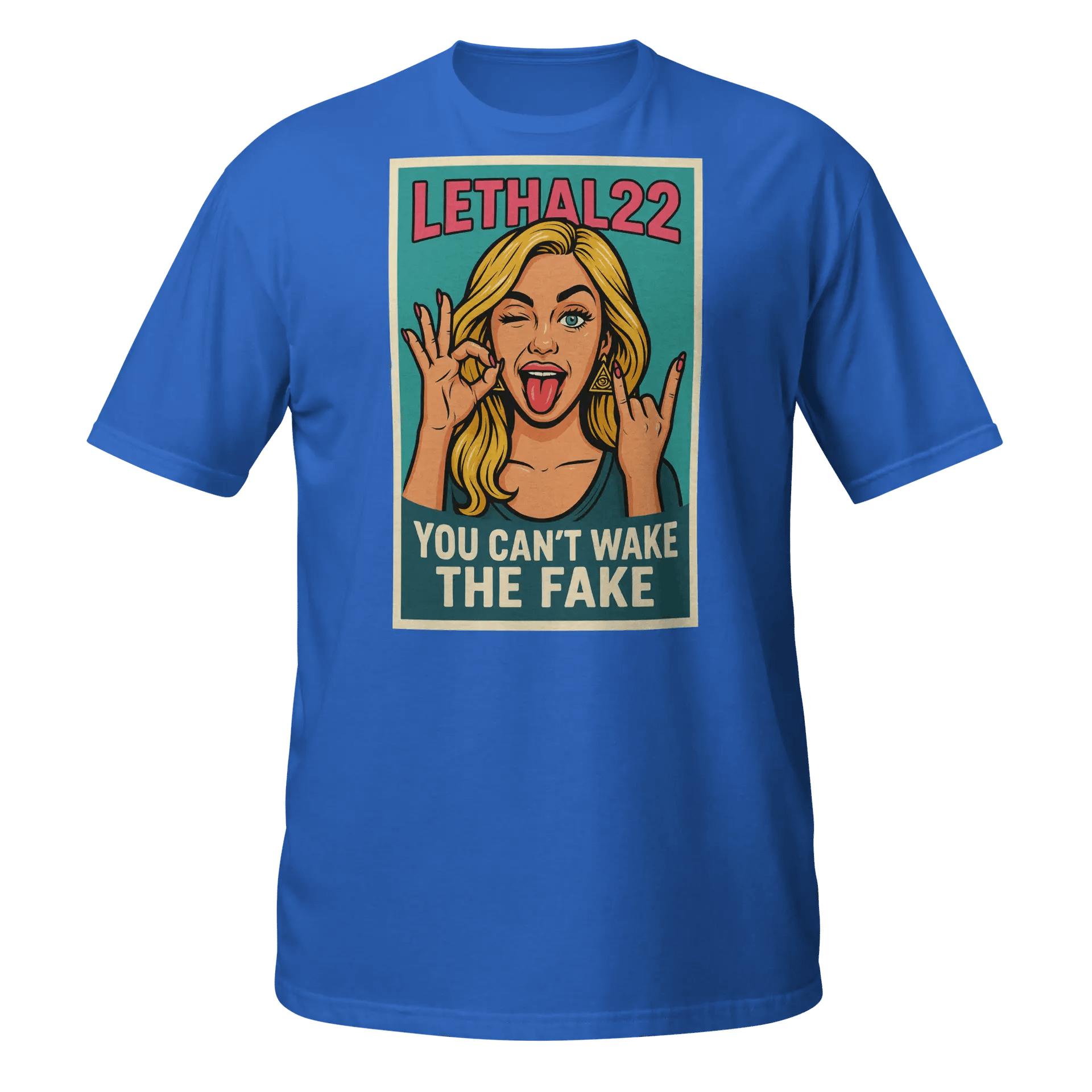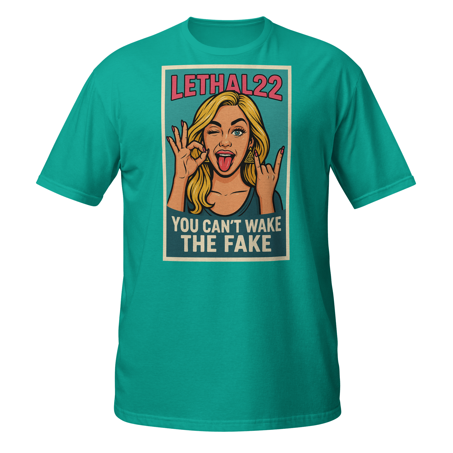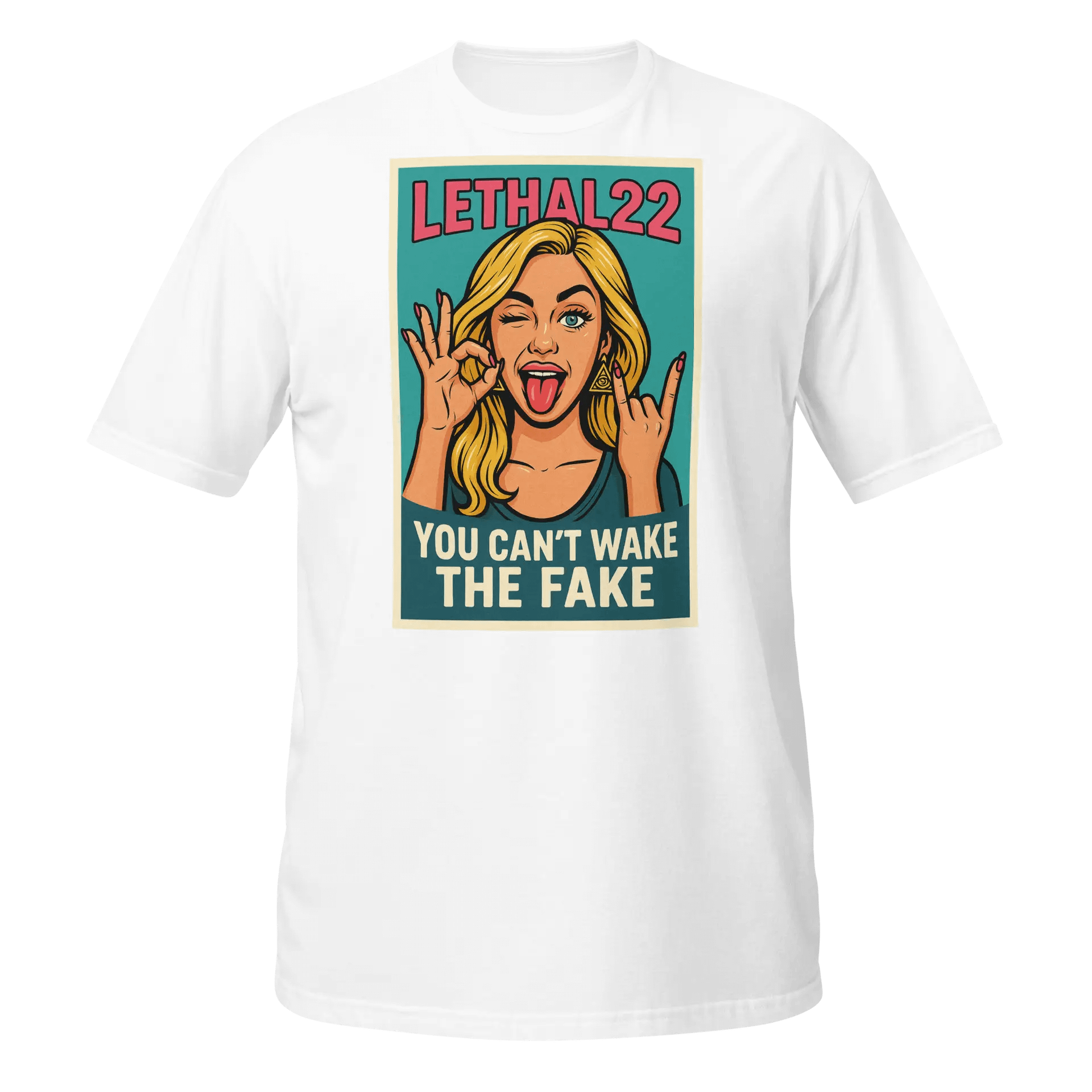 YOU CAN’T WAKE THE FAKE is a pop-art punchline for the red-pilled, the wide-awake, and the “I tried to warn you, bro” crowd. It’s funny, it’s bold, and it hits harder the longer you look at it. Perfect for those moments when you’re done explaining and you’d rather just wear the vibe and keep walking.